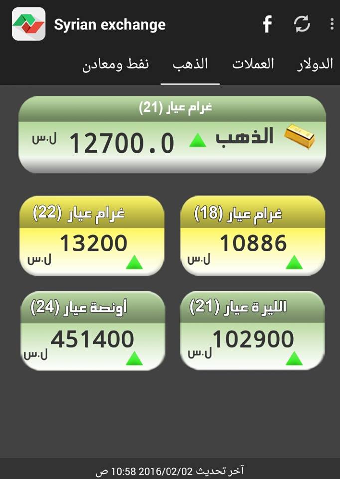 وفيما يلي أسعار أوزان الذهب حسب "سيرياستوكس":