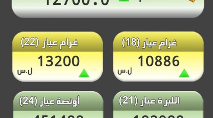 وبقي غرام الـ 21 ذهب عند 12700 ليرة، كما بقي غرام الـ 18 بـ 10886 ليرة.