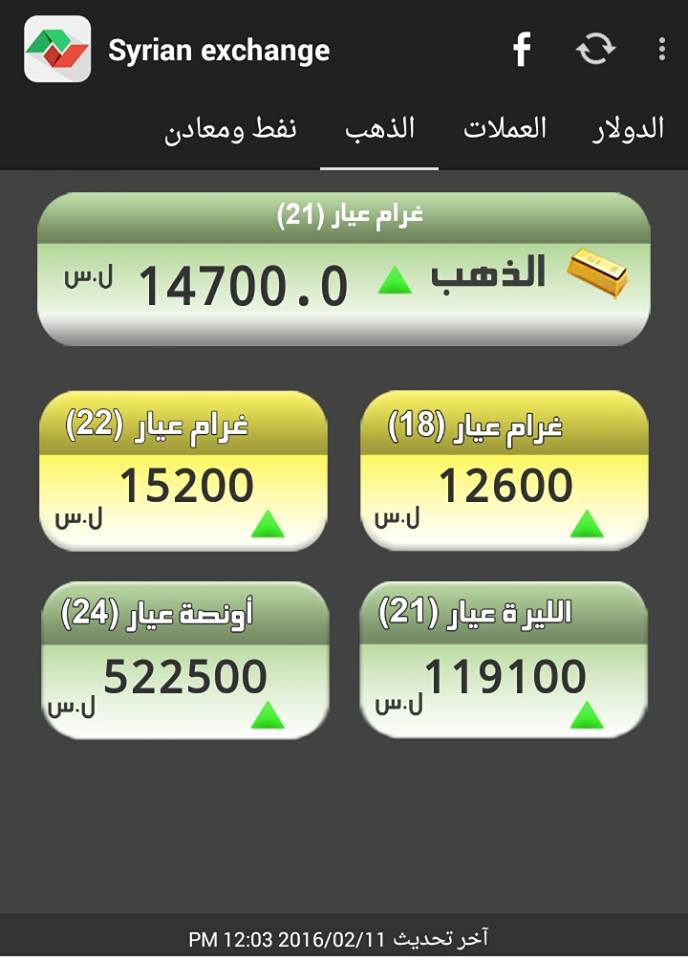 وفيما يلي أسعار أوزان الذهب حسب "سيرياستوكس":
