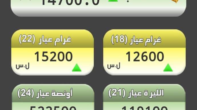 وأصبح سعر الذهب بدمشق، اليوم الخميس، بـ 14700 ليرة لغرام الـ 21، وبـ 12600 ليرة لغرام الـ 18.
