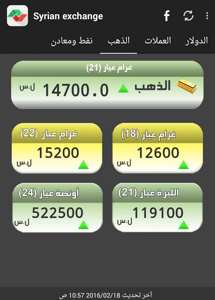 وفيما يلي أسعار أوزان الذهب حسب "سيرياستوكس":