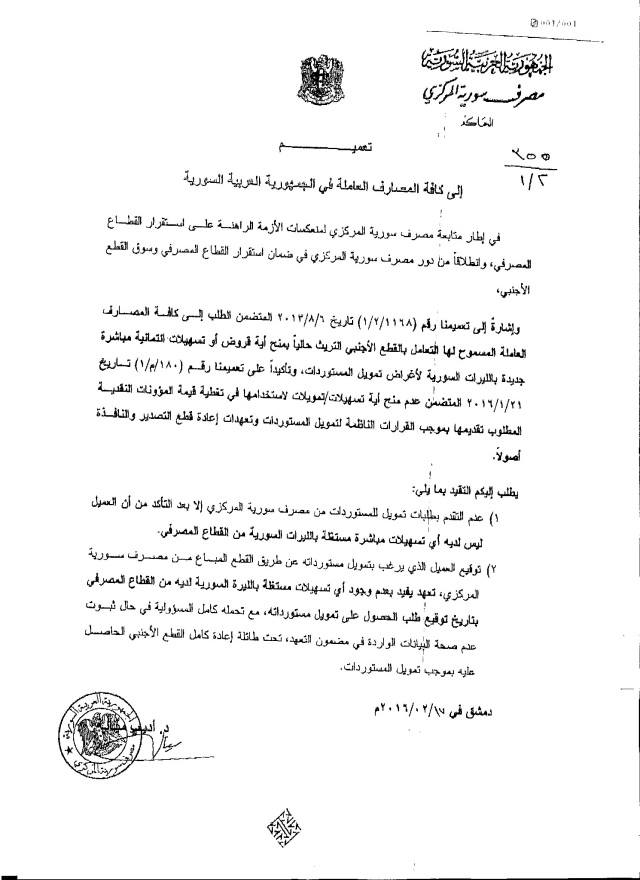 وقد أدى القرار حينها إلى ارتفاع أسعار السلع الاستهلاكية الرئيسة (المواد الغذائية خاصة)، كما أدى إلى خسارة المصارف لزبائنها المتمثلين بشريحة المستوردين في سوريا.