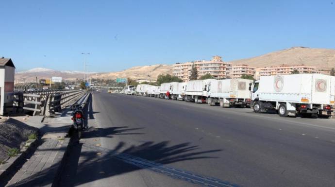 ودخلت قوافل المساعدات مساء الأربعاء الماضي حيث أفرغت محتوياتها في مستودعات المدينة ليتكفل الثوار بتوزيعها على 45 ألف مدني أي ما يقارب ثمانية آلاف أسرة.