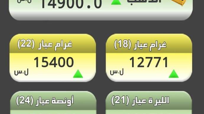 وبقي غرام الـ 21 ذهب بـ 14900 ليرة، وغرام الـ 18 بـ 12771 ليرة.