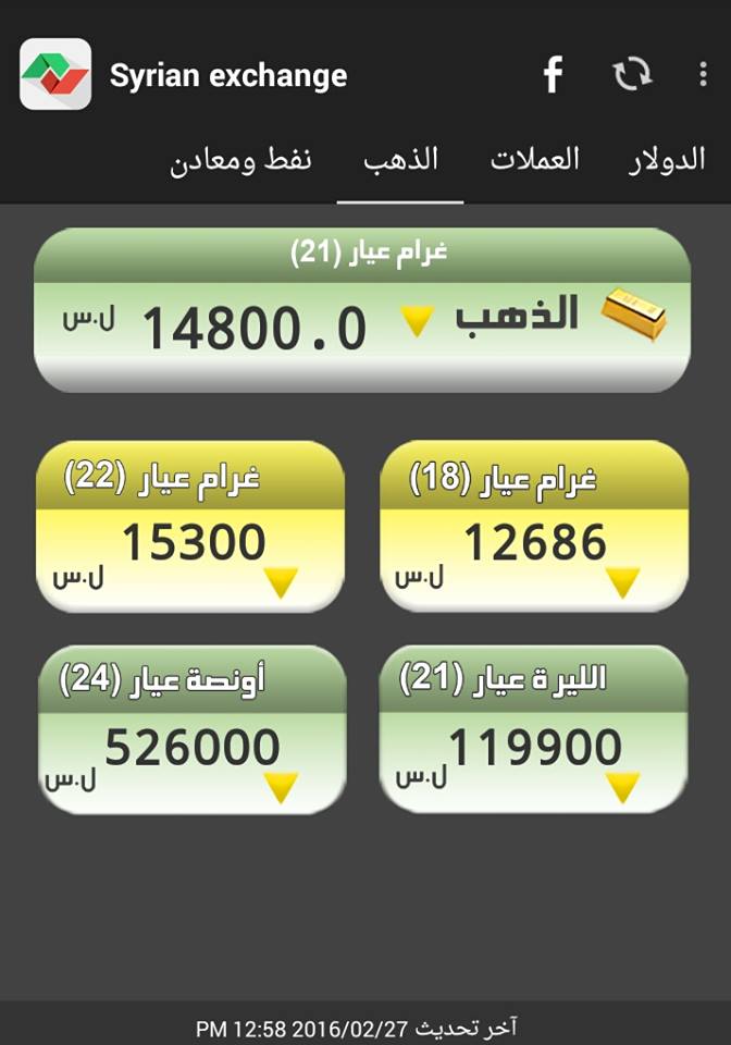 وفيما يلي أسعار أوزان الذهب حسب "سيرياستوكس":