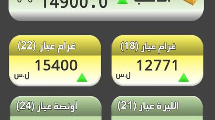 وارتفع غرام الـ 21 ذهب، 100 ليرة، ليصبح بـ 14900 ليرة، فيما أصبح غرام الـ 18 بـ 12771 ليرة.