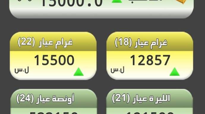 وأصبح غرام الـ 21 بـ 15 ألف ليرة، وغرام الـ 18 بـ 12857 ليرة.
