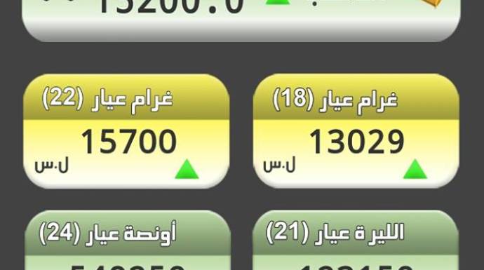وبقي غرام الـ 21 بـ 15200 ليرة، كما بقي غرام الـ 18 بـ 13029 ليرة.