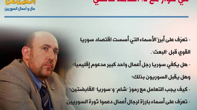 كان متحمساً، على خلاف الكثيرين، لدور رجال الأعمال السوريين في صياغة مستقبل سوريا، ونحن على أعتاب مرحلة، تُبدي المؤشرات أنها تقترب من لحظة الحل للصراع المسلح في البلاد، وما يعنيه ذلك لاحقاً، من الدخول في عالم السياسة والاقتصاد، بعد أن يذوي عالم الصراع المسلح.