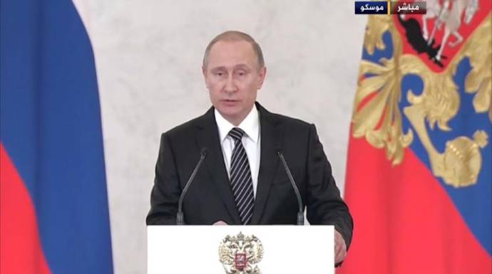واعتبر الرئيس الروسي أن قواته دعمت قوات النظام السوري وساعدتها على تحقيق انتصارات مهمة، معتبرا أن الأخيرة باتت تسيطر على مواقع إستراتيجية في سوريا وأنها تواصل "تطهيرها" مما أسماه الإرهاب.