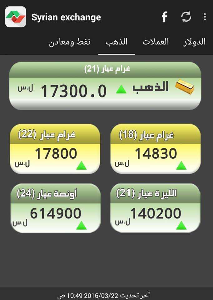 لكن المصادر الميدانية تؤكد بأن سعر الذهب في المحلات وصل إلى 17800 ليرة لغرام الـ 21، على خلاف السعر الرسمي الصادر عن الصاغة.