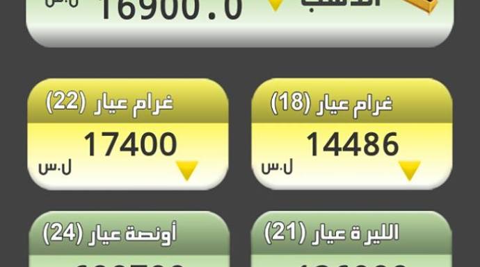 وحسب جمعية الصاغة بدمشق، بقي غرام الـ 21 بـ 16900 ليرة، وبقي غرام الـ 18 بـ 14486 ليرة،