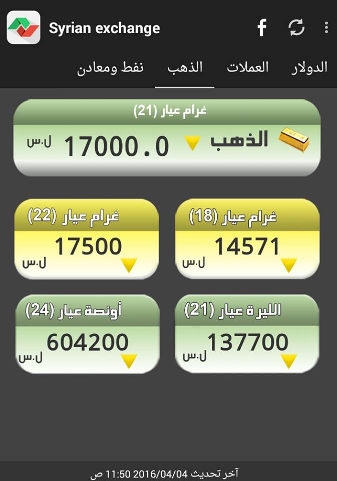 وفيما يلي أسعار أوزان الذهب حسب التسعيرة الرسمية، وفق "سيرياستوكس":