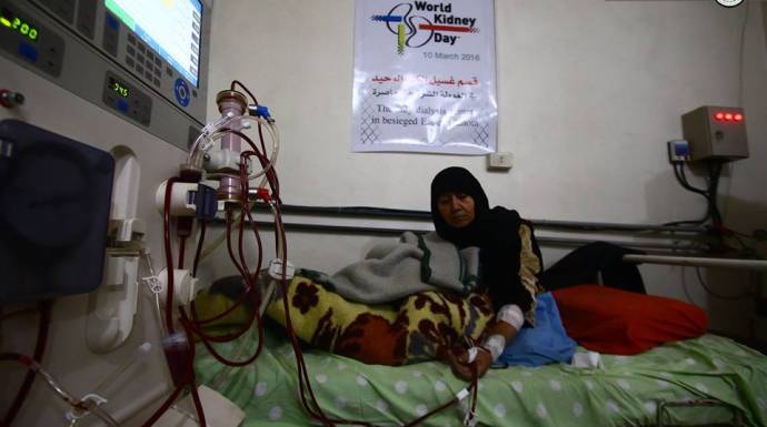 أطلق المكتب الطبي الموحد لمدينة دوما وما حولها في الغوطة الشرقية نداء استغاثة بعنوان "أنقذوا البقية"، لإنقاذ قسم الغسيل الكلوي من الإغلاق، الأمر الذي ينذر بتهديد حياة المرضى، كما حدث خلال شباط الماضي حيث أدى توقف القسم إلى وفاة مرضى.