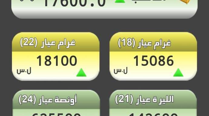وفيما يبدو أنها ملاحقة لأسعار السوق، رفعت جمعية الصاغة السعر الرسمي للذهب محلياً، اليوم السبت، ليصبح غرام الـ 21 بـ 17600 ليرة، فيما أصبح غرام الـ 18 بـ 15086 ليرة.