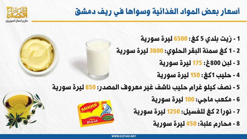 الأسعار في مناطق من ريف دمشق خاضعة لسيطرة النظام: