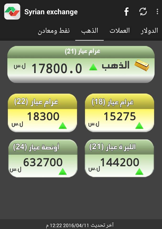 وفيما يلي أسعار أوزان الذهب حسب التسعيرة الرسمية، وفق "سيرياستوكس":