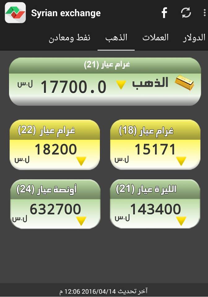 وفيما يلي أسعار أوزان الذهب حسب التسعيرة الرسمية، وفق "سيرياستوكس":