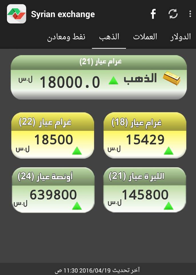 ورفعت جمعية الصاغة سعر غرام الـ 21 إلى 18 ألف ليرة، بزيادة 100 ليرة مقارنة بالسعر السابق. كما رفعت سعر غرام الـ 18 ليصبح بـ 15429 ليرة.