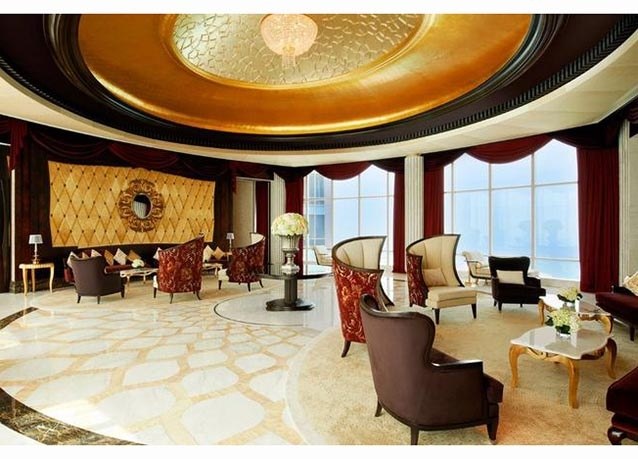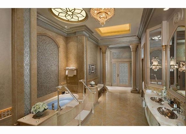 جناح القصر في فندق قصر الإمارات بأبوظبي، تأتي الفخامة في هذا الجناح مع ثريات مرصعة بكريستال شواروفسكي وتماثيل من الزجاج وخادم خاص لخدمتك على مدار الساعة، هذا ما ستحصل عليه مقابل 15 ألف دولار في الليلة.