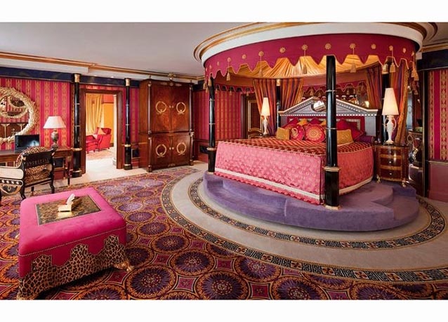 الجناح الملكي في فندق برج العرب، دبي، تبدأ تكلفة الليلة في هذا الجناح من 20 ألف دولار، ويمتد على مساحة 780 متراً مربعاً، وقد يشمل الجناح مصعداً خاصاً، ومكتبة، وسينما خاصة، وسرير قابل للدوران لضمان مشاهدة جميع المشاهدات.