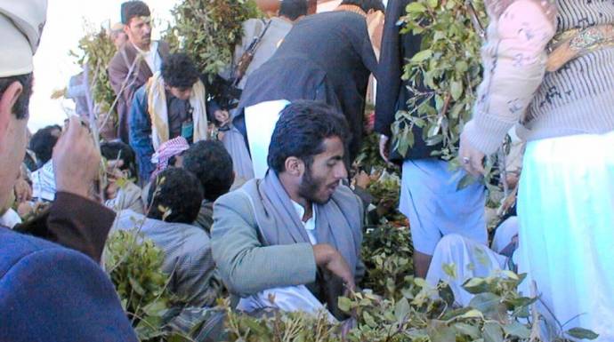 ويتعاطى غالبية اليمنيين البالغ تعدادهم أكثر من 25 مليون نسمة "القات" بالمضغ عن طريق الفم كعادة من بعد ظهر كل يوم في جلسات جماعية وفردية يطلق عليها شعبيا "المقيل" وتمتد إلى الساعات الأولى من المساء.