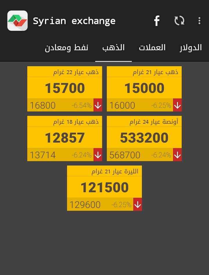 بدورها، رصدت صفحة "البورصة السورية"، مبيع غرام الـ 21 بـ 16 ألف ليرة، دون أن تحدد المنطقة.