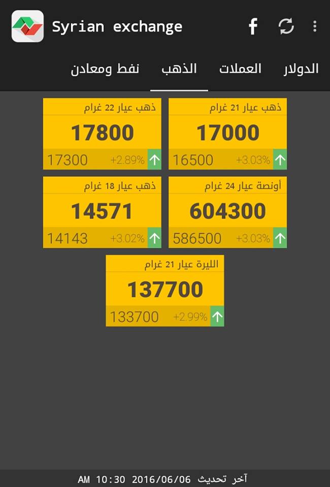 وفيما يلي أسعار أوزان الذهب وفق "التسعيرة الرسمية"، حسب تطبيق "سيرياستوكس":