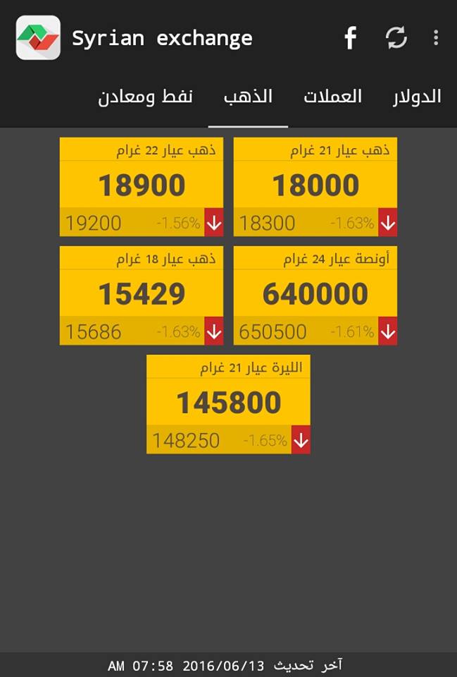 وفيما يلي أسعار أوزان الذهب حسب التسعيرة الرسمية، وفق "سيرياستوكس":