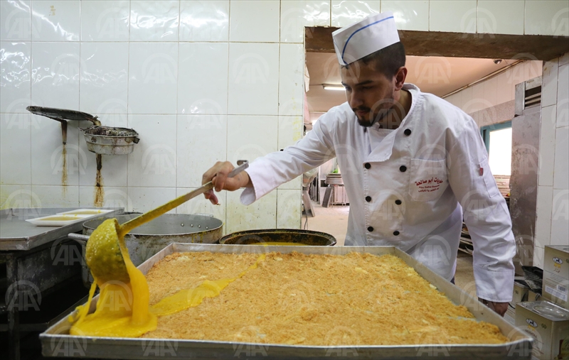 منذ ساعات الفجر الأولى يبدأ الفلسطيني "وائل الشرفة" العمل إلى جانب 30 عاملا في "مصنع أبو صالحة" لصناعة الحلويات الشهيرة، بمدينة نابلس، شمالي الضفة الغربية؛ لتلبية متطلبات المواطنين التي تتزايد خلال شهر رمضان المبارك.