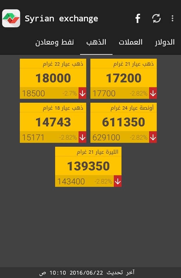 وبعد استقرار دام قرابة الأسبوع، أصبح غرام الـ 21 بـ 17200 ليرة، فيما أصبح غرام الـ 18 بـ 14743 ليرة، وذلك حسب "التسعيرة الرسمية" الصادرة عن جمعية الصاغة بدمشق.
