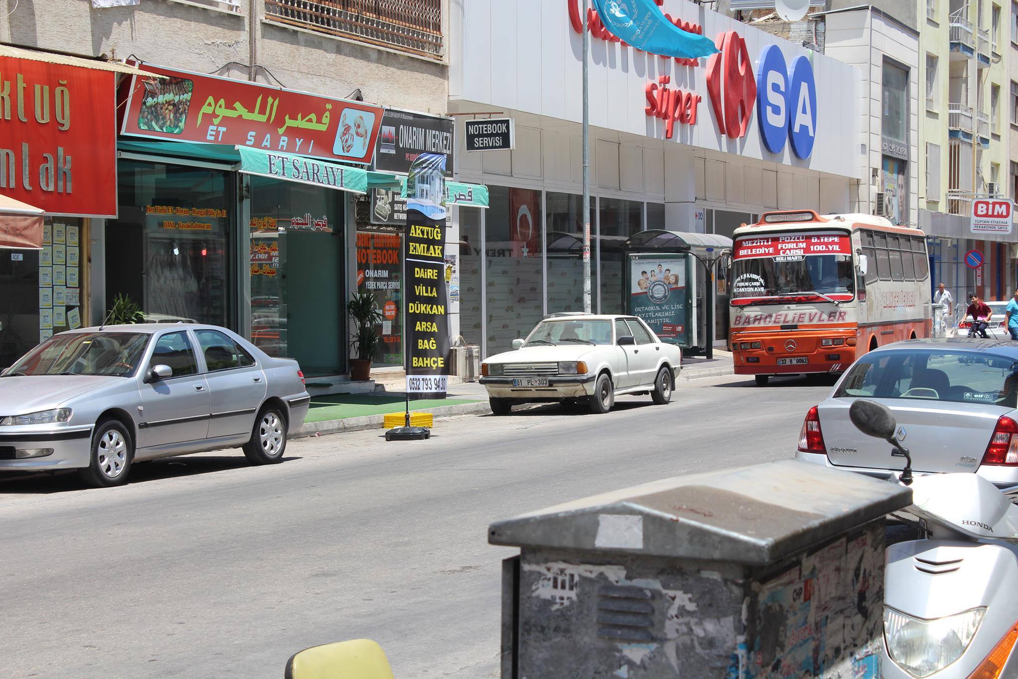 للوهلة الأولى تشعرك أصوات الباعة الجوالين الممزوجة بالصخب الذي يعم شارع السوق الذي يفصل حارة "اللوادقة" إلى قسمين، بأنك في مدينة سورية، لكن قد يلفت انتباهك قليل من العبارات التركية على واجهة بعض المحال، حتى تدرك أين أنت.
