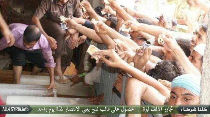 الحاج أبو توفيق والد أحد بائعي الثلج قال لـ "اقتصاد": "الأزمة على الثلج تشكلت من سببين، الأول هو عدم إدخال ما يكفي منه إلى المدينة، والثاني، عدم تعود هذا الشعب على النظام، في كل مكان يزدحم عليه الناس للشراء لا يوجد دور ولا تنظيم بل يتقاتل الناس على قطعة بوظة".
