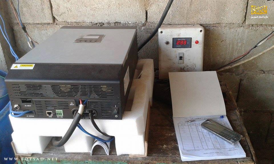 يوضح أبو محمد أنه للحصول على 6 ساعات عمل غاطس، قام بتركيب 16 لوح باستطاعة 250 واط بقيمة 1500 دولار، ووصلها عبر أسلاك خاصة إلى أربع بطاريات من نوع خاص، كل منها بسعة 250 آمبير بقيمة 600 دولار، وقام بربطها برافع جهد صناعي بقيمة 900 دولار يقوم بتحويل الكهرباء من 12 فولت إلى 220 فولت 3 فاز، وهي الكهرباء النظامية التي يحتاجها الغاطس للعمل.