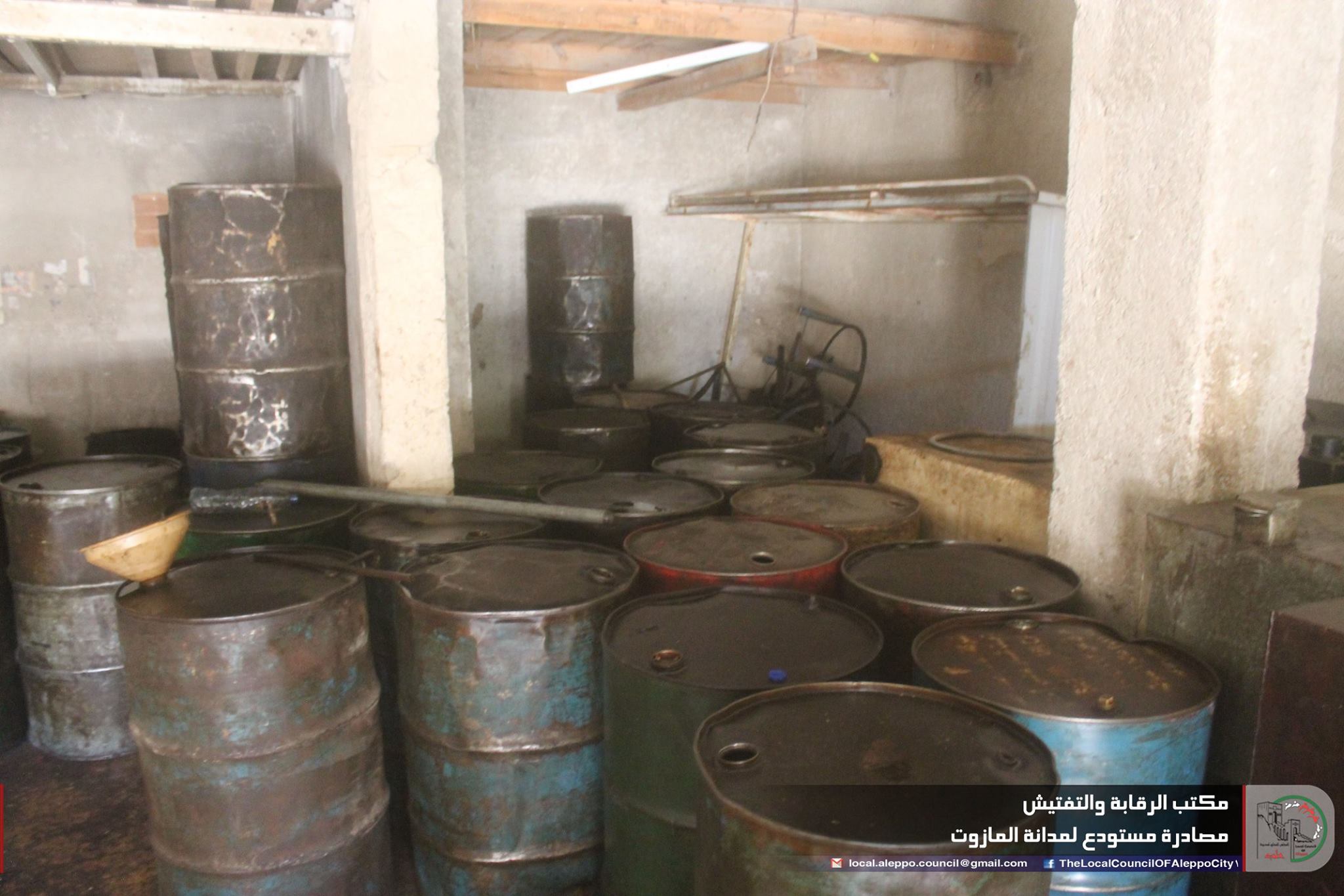 وقال مكتب الرقابة والتفتيش في المجلس المحلي للمدينة، إنه قام بمصادرة 26 برميل مازوت محتكر في إحدى المستودعات في المدينة، وقد تم تسجيل ضبط فيها، وسوف يتم بيع هذه البراميل للمشافي والأفران في الشطر المحرر من المدينة، حسب التسعيرة الرسمية الصادرة عن المجلس، حسب بيان الأخير.