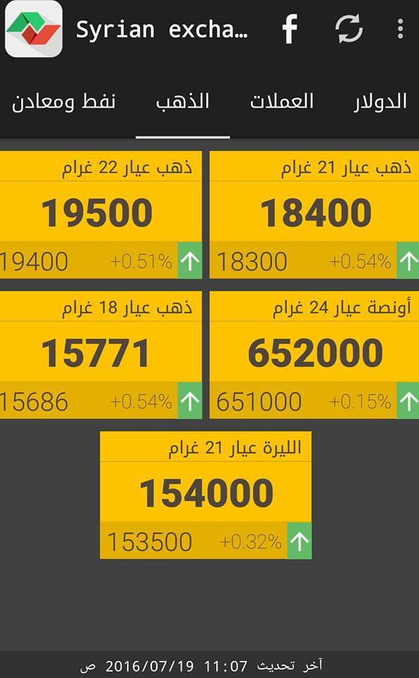 اعتمدت جمعية الصاغة بدمشق، السعر 491 ليرة، كسعر لـ "دولار الذهب"، الذي احتسبت على أساسه سعر الذهب محلياً. وهو سعر قريب جداً من سعر الدولار في السوق السوداء.