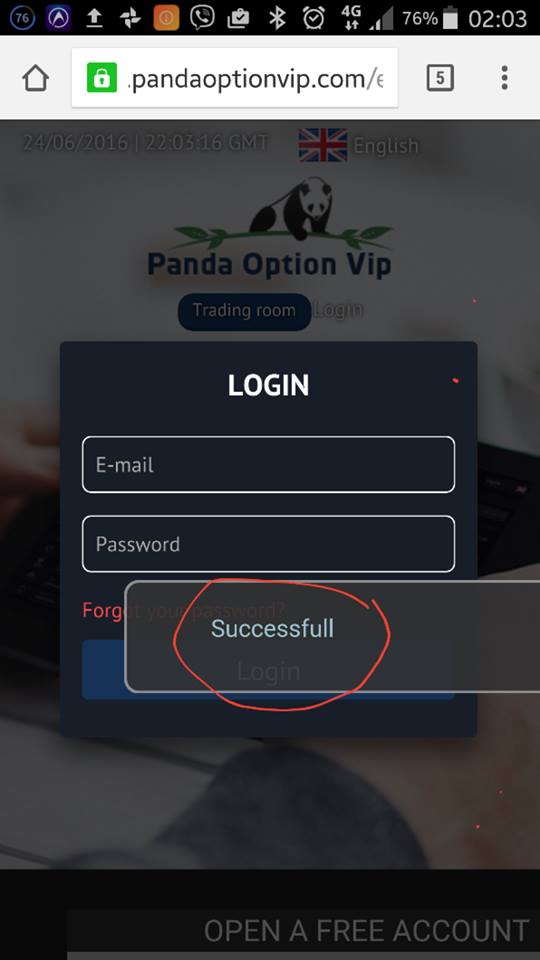 بعد ذلك تم تغيير طبيعة الحساب الاستثماري وتغيير الموقع الالكتروني بشكل كامل إلى www.pandaoptionvip.com وكان هناك مشكلة كبيرة هي وجود خطأ في بيانات الإجراءات المالية (ايداع، دعم، طلب سحب) حيث كان هناك مقدار لدعم (bonus) تم مضاعفته 100 مرة، مما يؤثر على إمكانية الموافقة على سحب الأرباح لاحقاً.