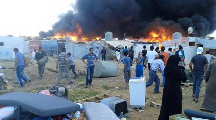 إصابة 3 سوريين باختناق إثر حريق بمخيم للاجئين شرقي لبنان