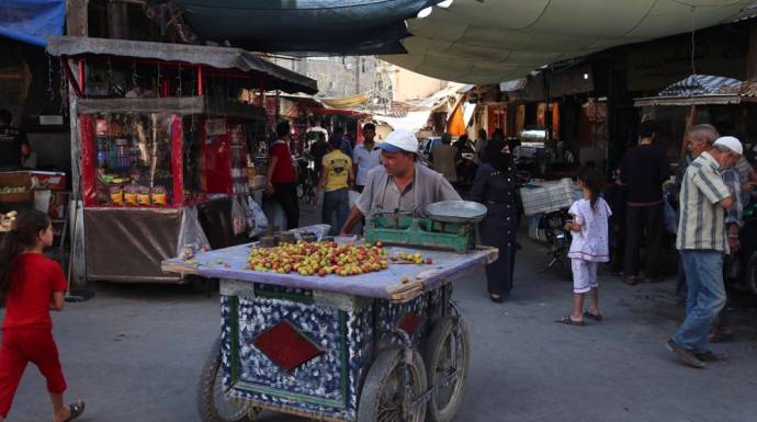 رصد "اقتصاد" أسعار بعض أنواع الخضار والفواكه، وبعض المواد الغذائية، واللحوم، في بلدات من الغوطة الشرقية بريف دمشق.