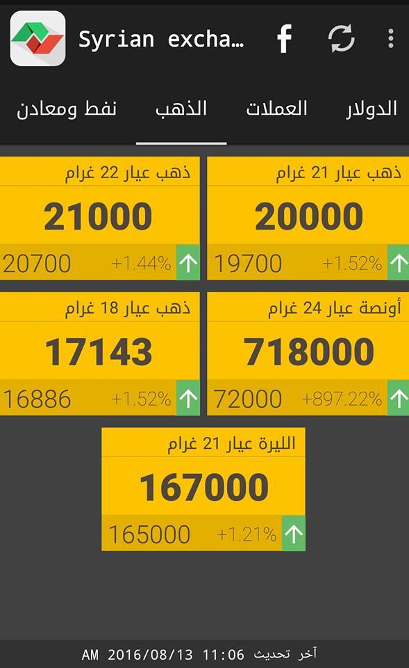 وفيما يلي أسعار أوزان الذهب حسب "سيرياستوكس"، ووفق "التسعيرة الرسمية":