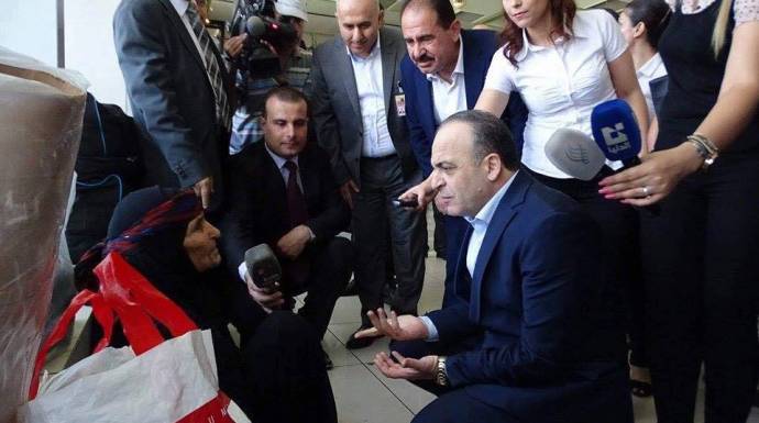 هل يعتقد هذا الشخص أنه بهذا المشهد الحنون، يستطيع أن يمحو أكثر من خمس سنوات من العذاب التي ألحقها نظامه بالشعب السوري، بما فيها المرأة العجوز التي يجلس قبالتها..؟!