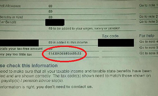 وذكر موقع "هوم بيتي" البريطاني أن "هيبورج" اكتشف الخطأ الذي وقعت فيه إدارة الإيرادات والجمارك، لدى عودته من المقهى، ليعثر على رسالة تعلمه أن قيمة الضريبة المترتبة عليه تصل إلى 14.301.369.864.489.03 جنيه إسترليني.