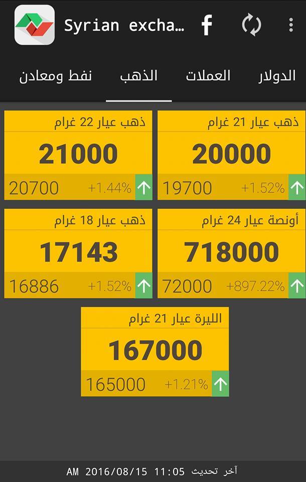 وفيما يلي أسعار أوزان الذهب حسب "سيرياستوكس"، ووفق "التسعيرة الرسمية":