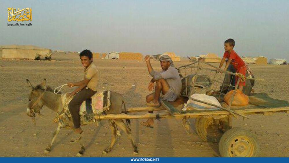 ويعتمد نازحو مخيم الرقبان في تنقلاتهم، على عربات بدائية تجرها الحيوانات.
