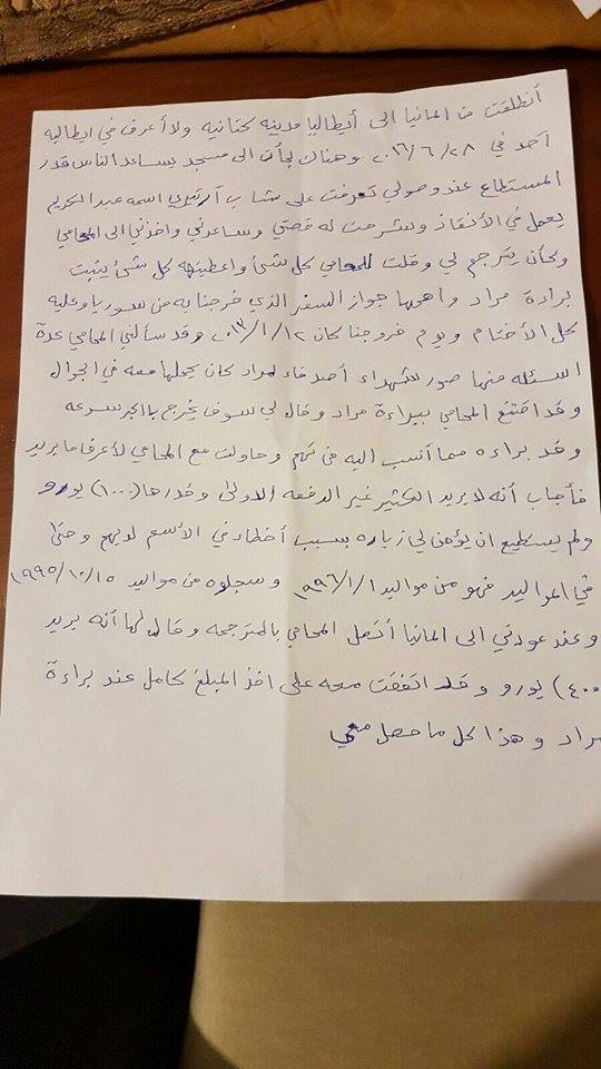 وسعياً لإطلاق سراح ولدها سافرت والدة مراد لوحدها من ألمانيا إلى مدينة كاتانيا الإيطالية، التي لا تعرفها، ولا تعرف أحداً فيها، بتاريخ 28/6/2016، لتوكيل محامي يساعدها في إطلاق سراح ابنها.