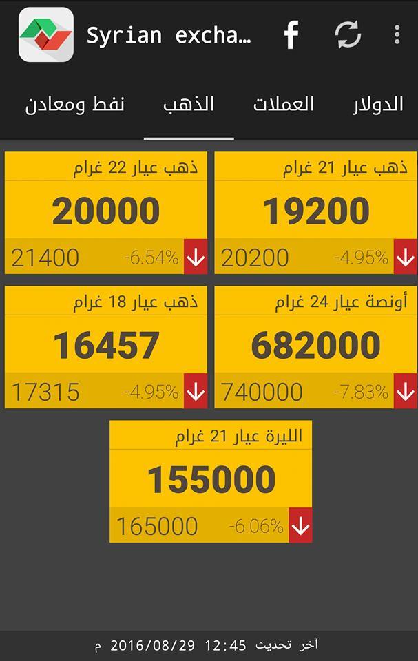 تراجع الذهب في سوريا، اليوم الاثنين، بصورة نوعية، إذ خسر غرام الـ 21 ذهب، 1000 ليرة، دفعةً واحدةً.