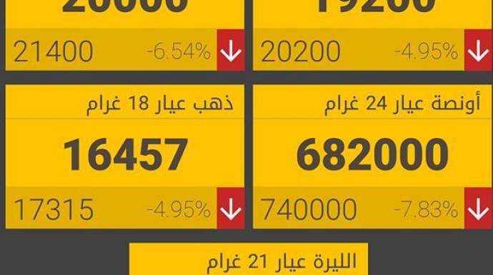 وأصبح غرام الـ 21 ذهب بـ 19200 ليرة، فيما أصبح غرام الـ 18 بـ 16457 ليرة.