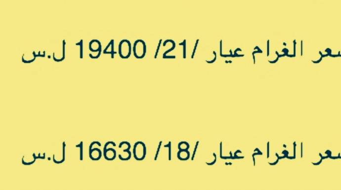 وأصبح، اليوم الثلاثاء، سعر غرام الـ 21 ذهب بـ 19400 ليرة، وسعر غرام الـ 18 بـ 16630 ليرة.