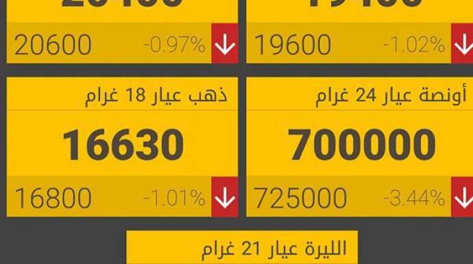 وأصبح غرام الـ 21 ذهب بـ 19400 ليرة، فيما أصبح غرام الـ 18 بـ 16630 ليرة.