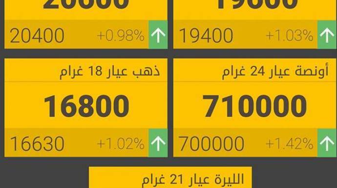 وبقي غرام الـ 21 ذهب بـ 19600 ليرة، وغرام الـ 18 بـ 16800 ليرة.